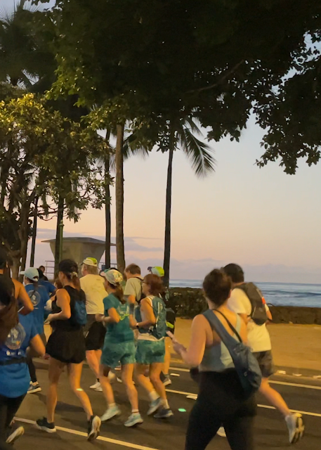 ワイキキの歩道を、欽ちゃん走りする人なんか、